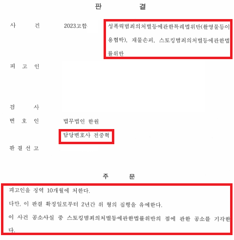 "최근 강력범죄에 대해서는 집행유예를, 스토킹범죄에 관해서는 공소기각을 받았습니다"