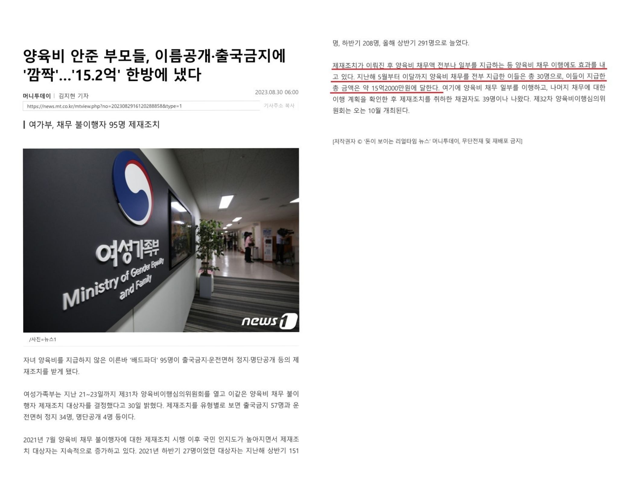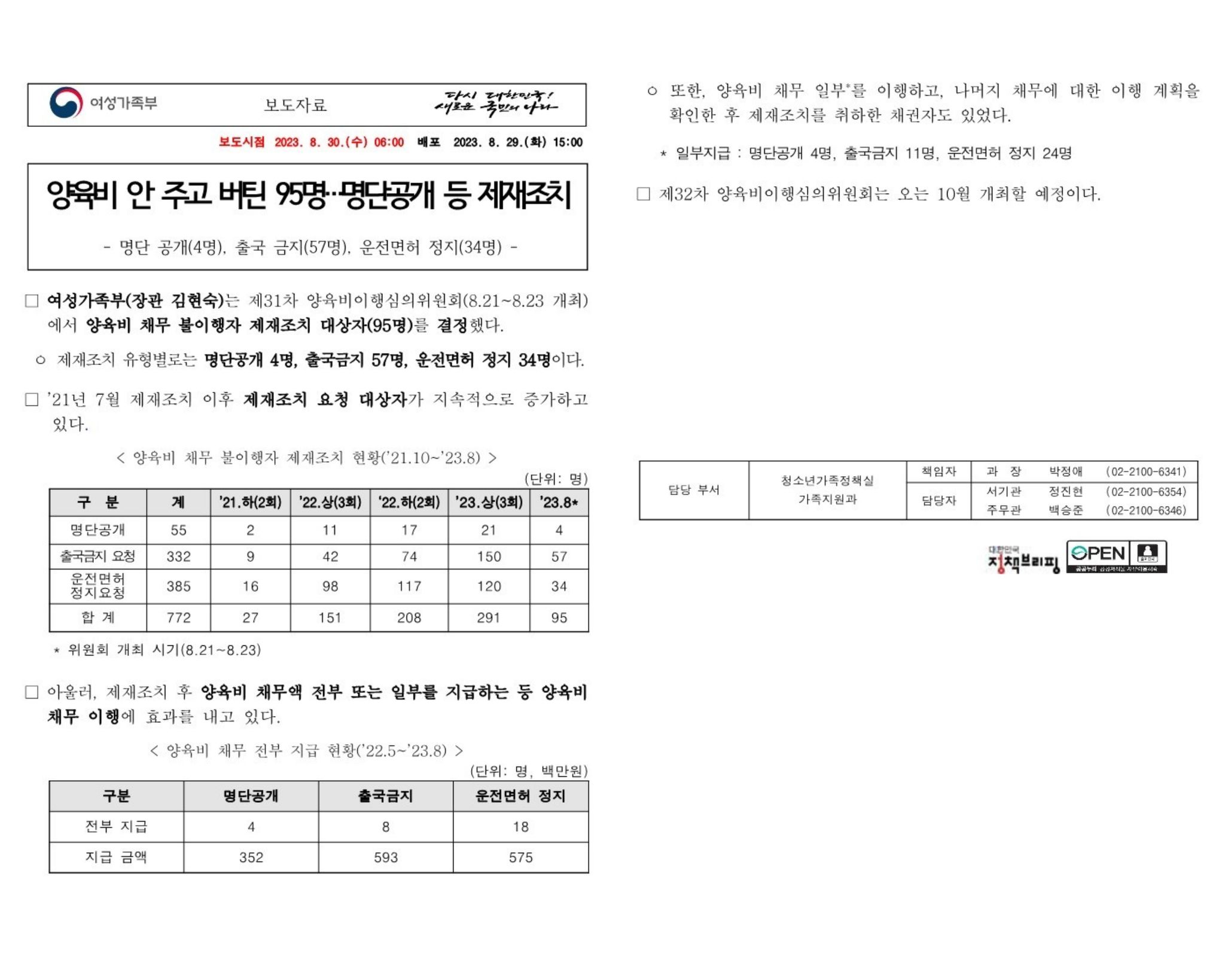 양육비 채무자에 대한 운전면허 정지처분 요청, 출국금지 요청, 명단 공개를 하는 주무부처는 바로 여성가족부입니다.