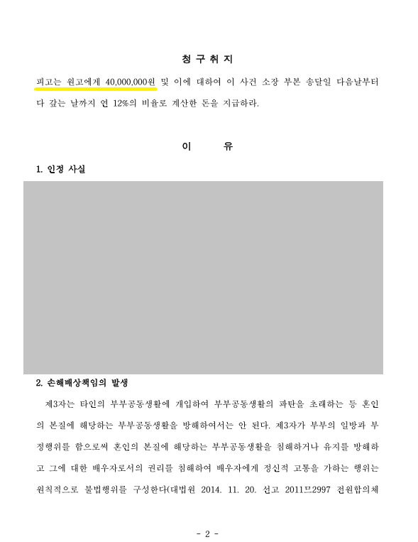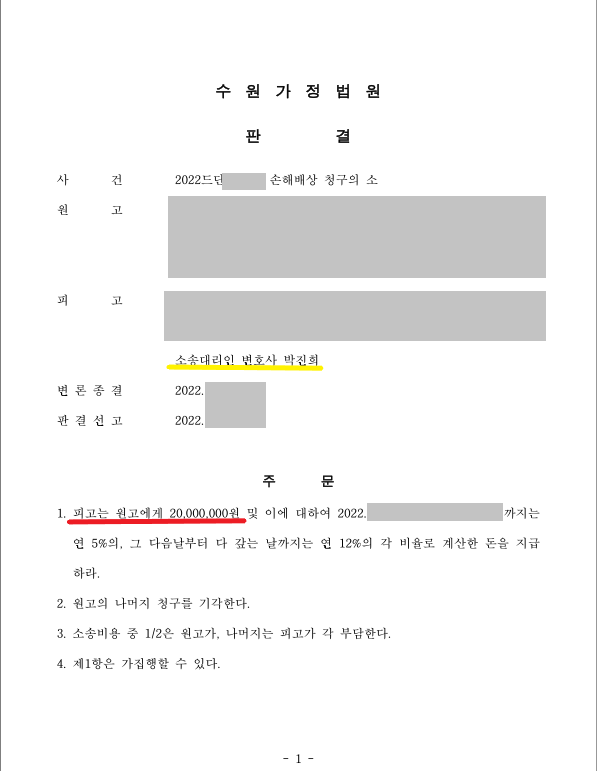 청구금액 "4천만원" >> 판결금액 "2천만원"으로 판결 받은 사례가 있었습니다.