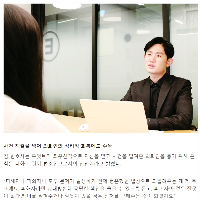 이는 실제로 저희가 고소 대리뿐만 아니라 방어를 도와드리며,