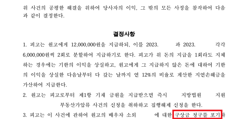 특히, 의뢰인께서는 위 조항을 모두 포함하면서 위자료 금액을 조정하였고,