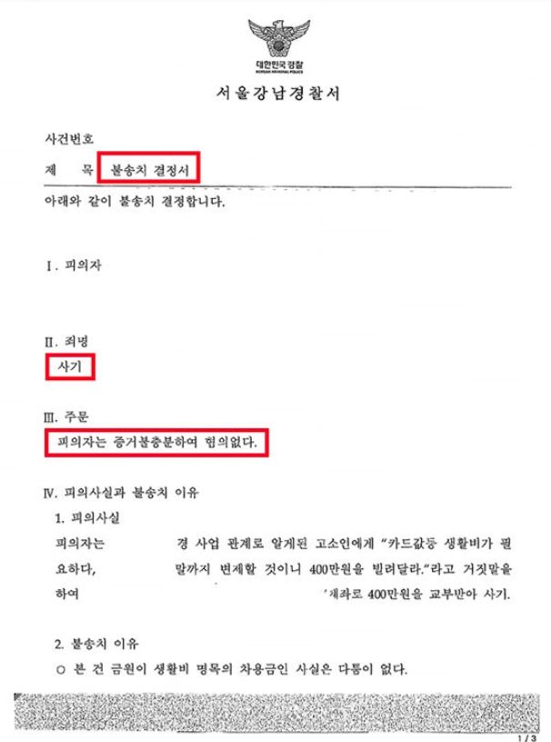 3. 사건 초기, 사건을 다각도로 검토하여 불송치 처분을 받음