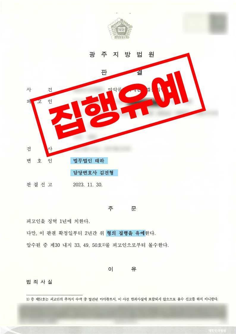 수사과정에서 실제 수수 및 투약에 이르지 않은 부분을 다수 정리하였으며, 재판부는 담당변호인의 주장을 모두 받아들여 집행유예 처분을 하였습니다.