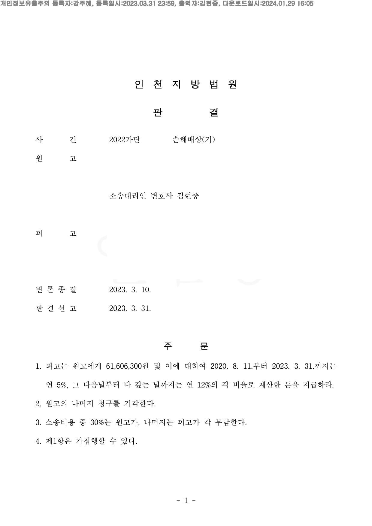 ****판결문을 보시면 아시겠지만 변호인으로서 제 이름만 들어가 있는 것을 확인하실 수 있습니다. 제가 온전히 혼자서 이끌어 낸 사례만을 저의 해결사례로 올리는 것이니 참고 바라며, 고용 변호사가 처리한 사건에서 제 이름만 들어간 사례라던 가 다른 변호사들과 함께 처리한 사건에서 제 이름이 들어갔다는 이유로 자신의 독자적인 해결사례인 것처럼 올리지 않습니다. 또한 착오가 없는 이상, 기존에 올렸던 해결사례를 일정 기간이 지난 후에 새로운 해결사례인 것처럼 재차 업로드 하지 않습니다. ****