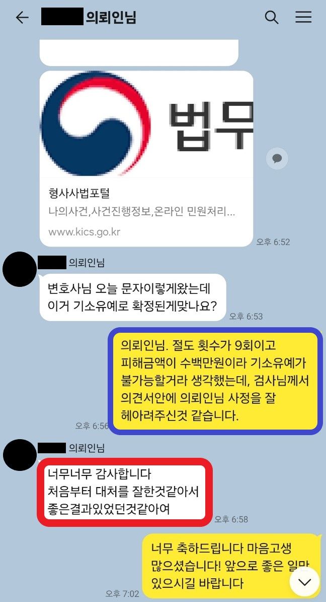 그 비결은, 의뢰인의 안타까운 사정 하나하나 소홀히 여기지 않고, 의견서에 잘 담아내는 것이라고 생각합니다. 본 사건 역시 그러한 사례라고 할 것입니다.