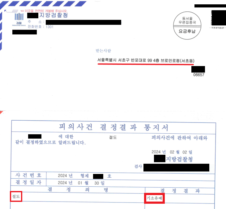 매우 다행히도 사건을 송치받은 담당 검사는 A를 정식 기소하지도, 약식 기소하지 않았습니다.