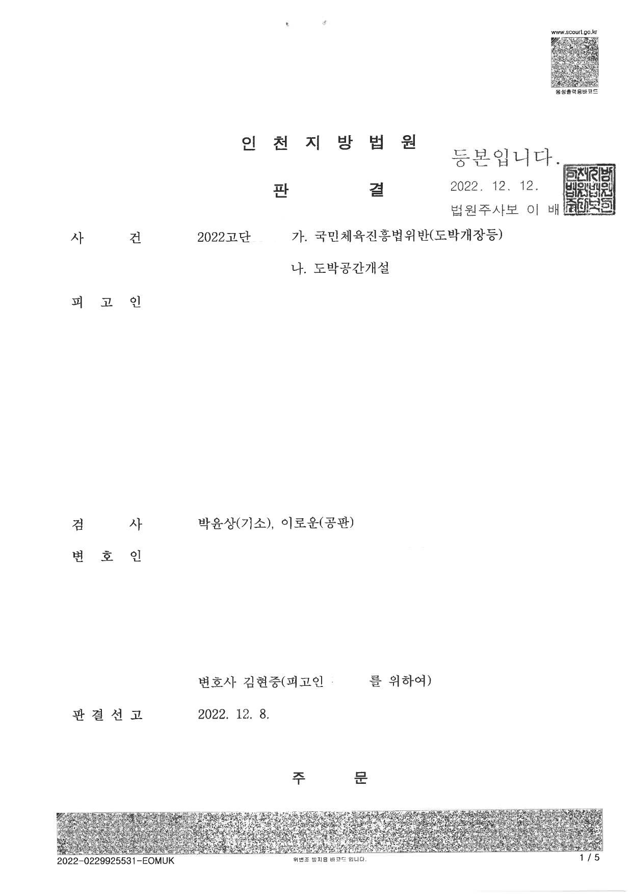 피고인은 여러사람과 공모하여 필리핀 마닐라에 있는 사무실에서 '연꽃, AnnaPurna, DR Sports&casino, BETPRIDE, 스고이, 유키노, 하스스톤, 졸로, 시노스, 루디스, 헤네시스, 엘리니아, 제왕카지노, 시타델, 이어리, 대한민국 등' 불법 인터넷 스포츠토토 도박 사이트 16개를 개설하여 운영하면서 영리를 취득 하였습니다.