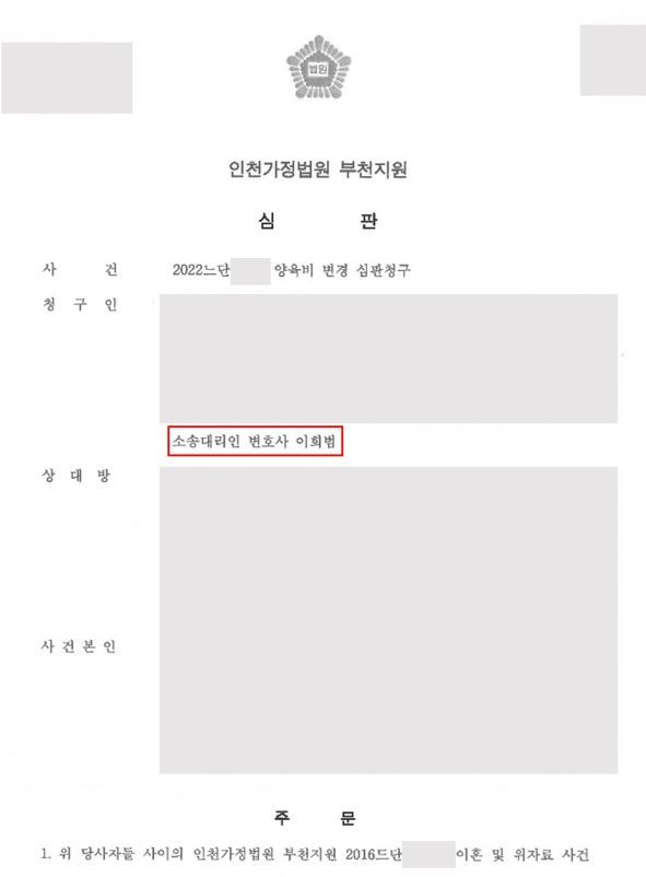 [ 가사 성공사례 ] 양육비 변경 심판 청구 승소