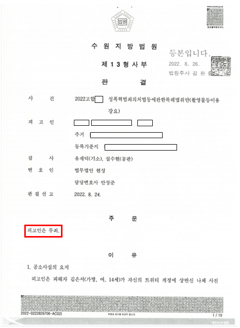 다시 검사항소가 부당하다는 의견을 개진했고 결국 무죄판결을 확정 받았습니다.