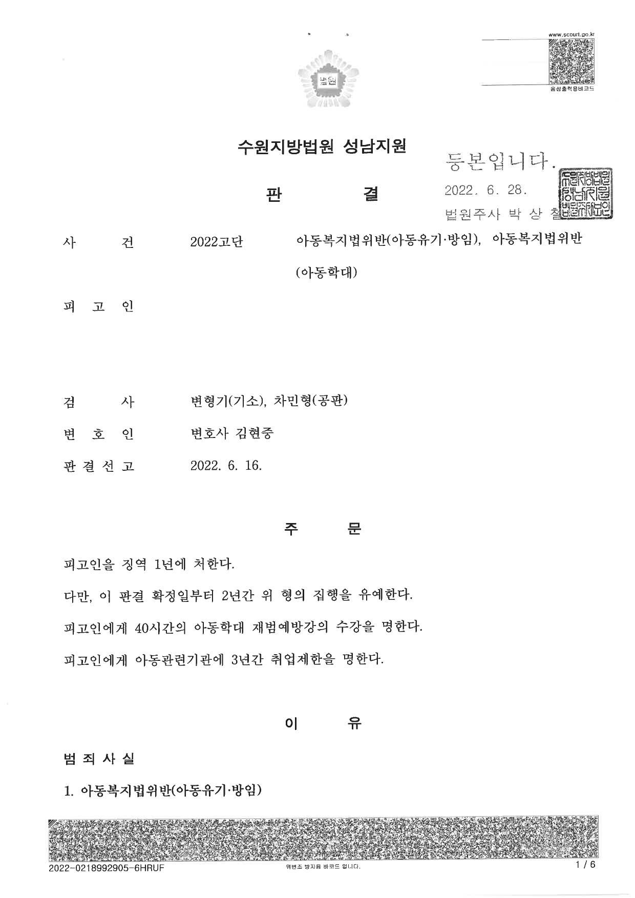 ****판결문을 보시면 아시겠지만 변호인으로서 제 이름만 들어가 있는 것을 확인하실 수 있습니다. 제가 온전히 혼자서 이끌어 낸 사례만을 저의 해결사례로 올리는 것이니 참고 바라며, 고용 변호사가 처리한 사건에서 제 이름만 들어간 사례라던 가 다른 변호사들과 함께 처리한 사건에서 제 이름이 들어갔다는 이유로 자신의 독자적인 해결사례인 것처럼 올리지 않습니다. 또한 착오가 없는 이상, 기존에 올렸던 해결사례를 일정 기간이 지난 후에 새로운 해결사례인 것처럼 재차 업로드 하지 않습니다. ****