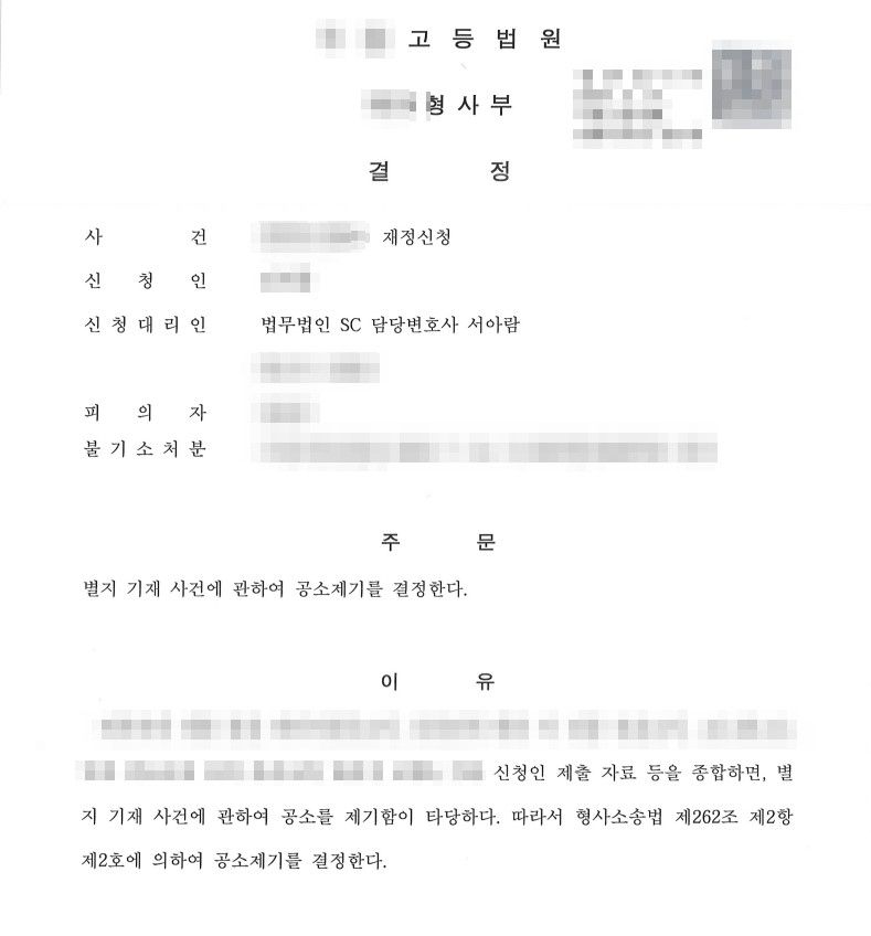 이 사건의 경우에도 미리 자료 검토를 거쳤는데요(자료 검토시에는 소정의 비용이 따로 듭니다). 검토 결과, 경찰과 검찰의 결정 내용에 법리적으로 심각한 오류가 있었을 뿐만 아니라, 수사 과정에도 문제가 있었습니다. 수사가 미진했던 부분이었습니다. 그래서 저는 개인적으로 다퉈보고 싶은 욕심이 들었지만, 고등검찰은 기본적으로 검찰이어서 항고인용에 항상 소극적이고, 법원 재정신청은 인용률이 0%에 수렴하니 의뢰엔에게 함부로 희망을 불어넣어 줄 수가 없었습니다. 다행히 의뢰인 분은 실패하더라도 끝까지 해보고 싶고, 꼭 제게 사건을 맡기고 싶다고 하셨고, 그래서 항고와 재정신청을 연달아 진행하게 되었습니다.