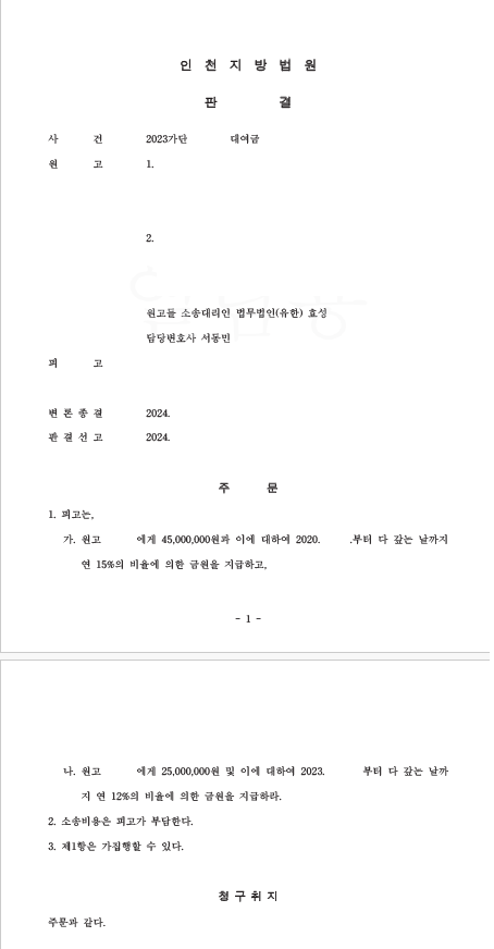저는 즉각 대여금청구소송을 제기하여 기타 증거로 대여사실을 주장 입증하였고 법원은 원고 승소 판결을 선고하여 의뢰인들은 대여금을 변제받았습니다.