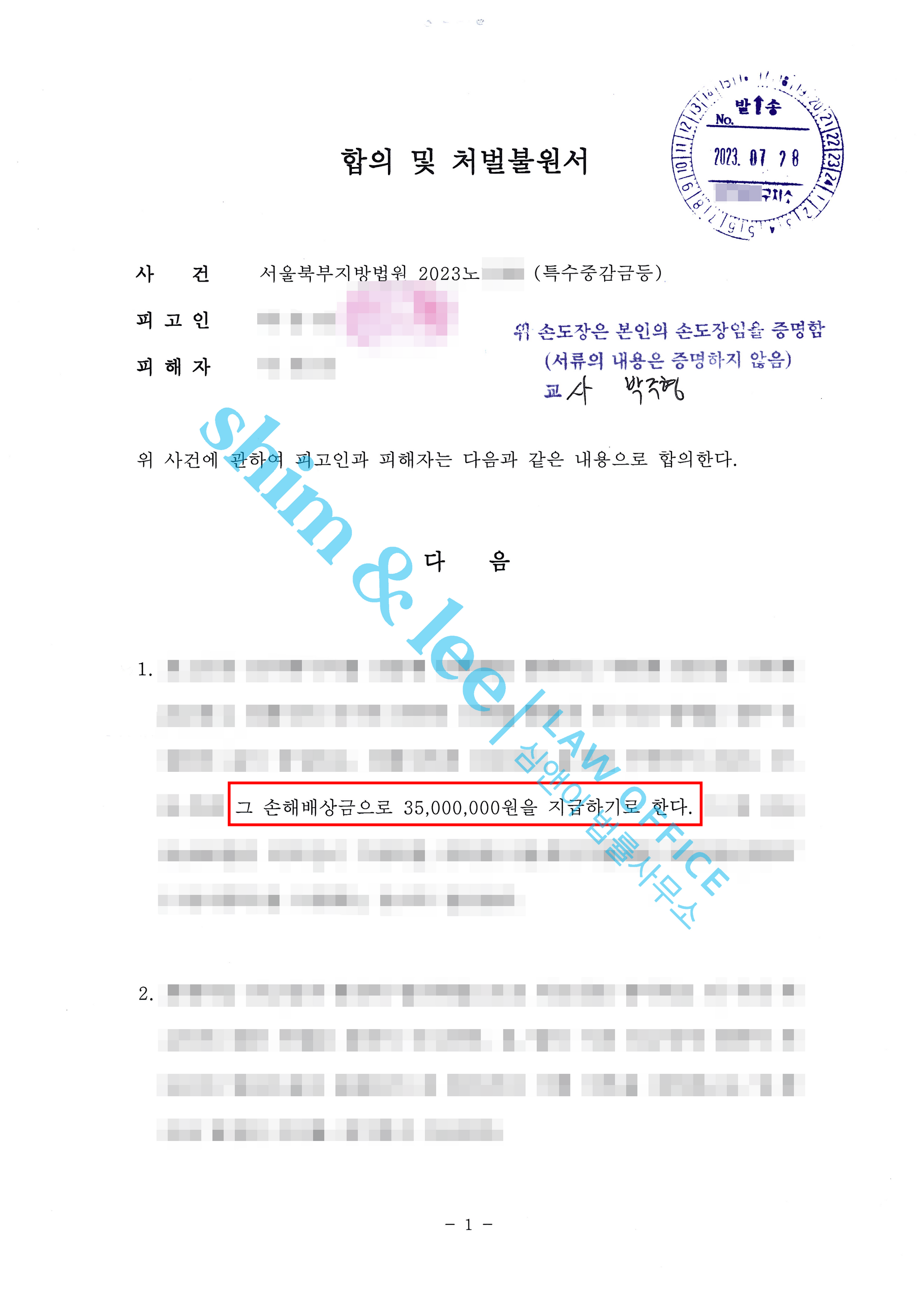 - 합의금 3,500만 원