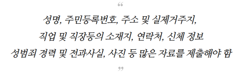 상당히 많은 양의 신상정보를 제출해야 하기 때문에 누락된 것이 있는지 꼼꼼히 확인하실 필요가 있겠습니다.