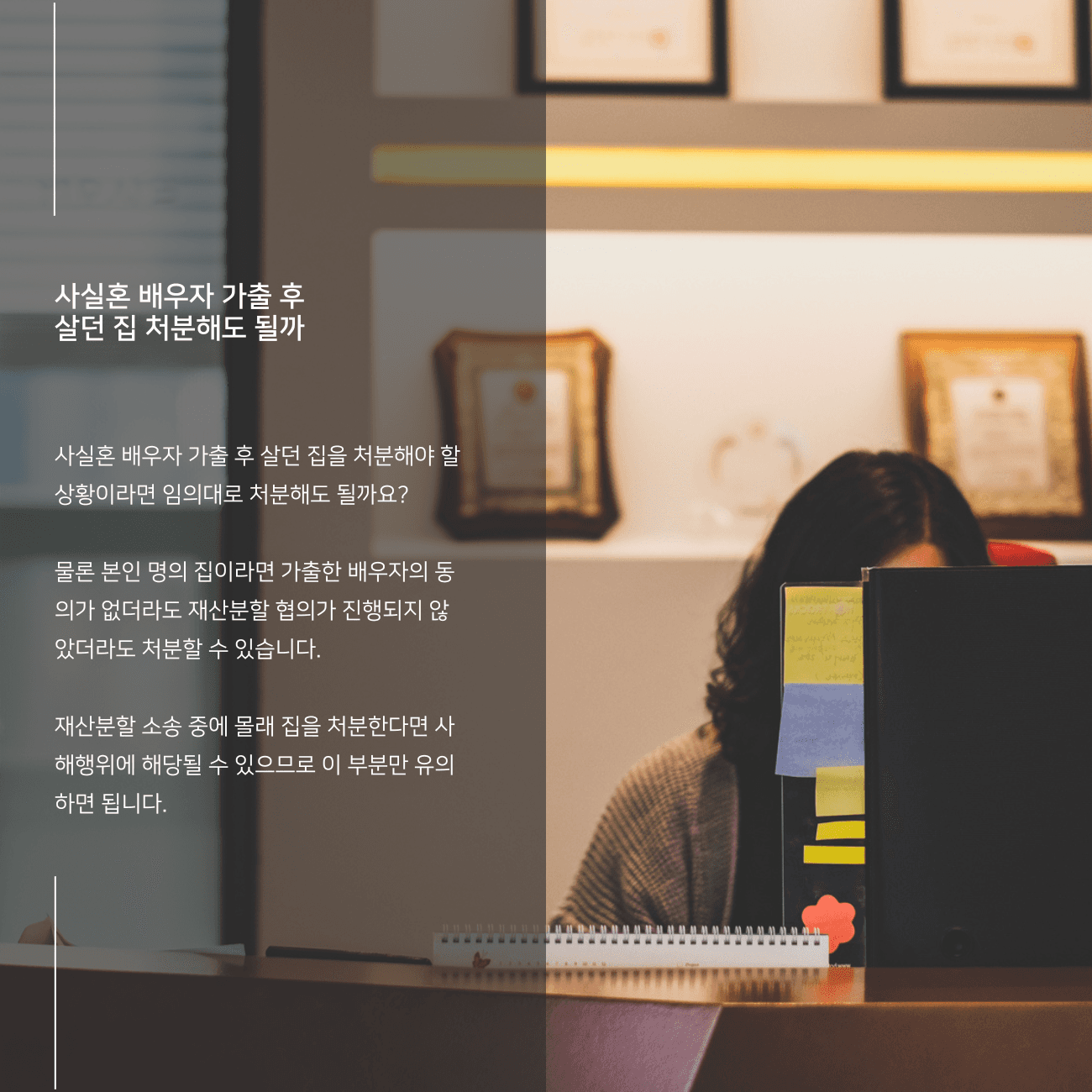이번 시간에는 사실혼 해소 후 임의대로 부동산을 처분해도 되는지, 그리고 사실혼 재산분할 방법에 대해 알아보도록 하겠습니다.