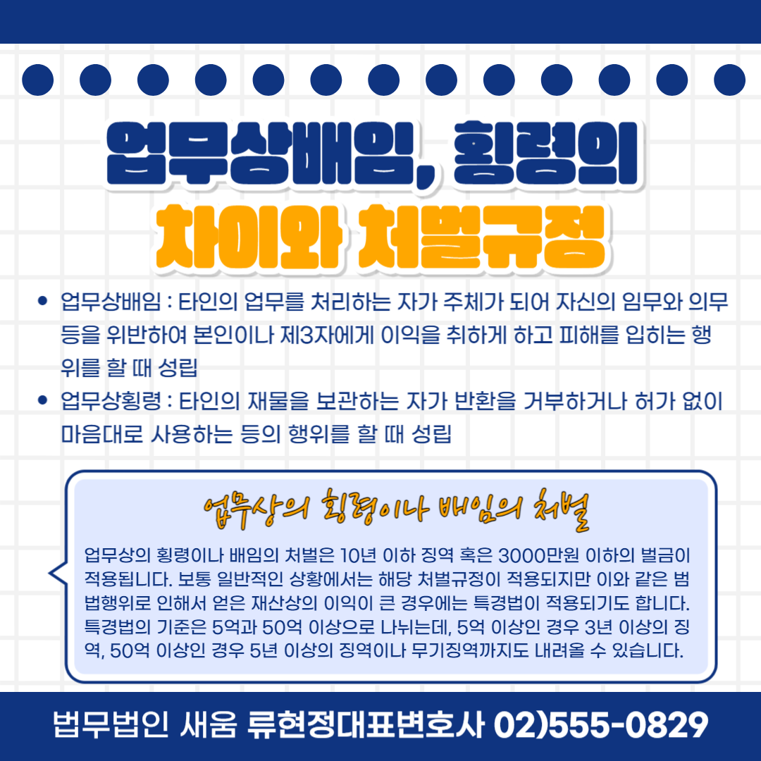 보통 금전적인 부분을 다루는 부서에 있는 분들은 돈을 돈이라 생각하지 않고 숫자일 뿐이라고 느낀다는 말을 많이 합니다. 하지만 사람인 이상 많은 돈을 보고 이를 좌지우지할 수 있는 권한이 있는 경우 한 번쯤은 욕심이 생겨나게 되는데요. 이 욕심을 참지 못하고 손을 대거나 혹은 본인의 직무상의 권한 등을 이용해 사사로이 이익을 취하는 등의 행위를 하는 경우 업무상배임, 횡령으로 처벌을 받게 될 수 있습니다. 일반적인 횡령이나 배임에 비해서 업무상의 범행은 더욱 큰 처벌을 받게 되는 것을 볼 수 있는데요. 오늘은 어떤 상황에서 범행이 성립되며, 어떤 처벌을 받을 수 있고 어떻게 대응해야 하는지에 대해서 알아보도록 하겠습니다.