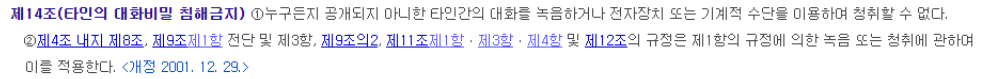 해당사건의 녹취록은 "통신비밀보호법"에 대한 위반에 해당합니다. 이 법안은 통신 및 대화의 비밀과 자유에 제한하는 것으로 공개되지 않은 타인 간의 대화를 전자기계를 이용해 녹음할 수 없다고 규정하고 있기 때문입니다.