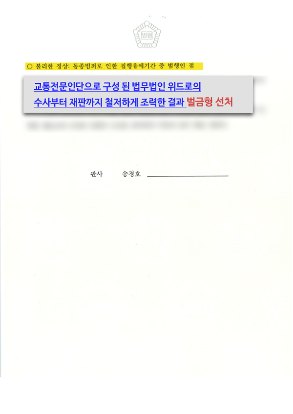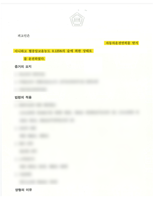 의뢰인에게는 불이익이 매우 컸기에, 해당 사안은 교통범죄 전문 변호사의 조력이 필요한 사안입니다.