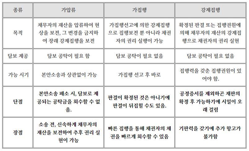 가압류, 가집행, 강제집행의 차이는?
