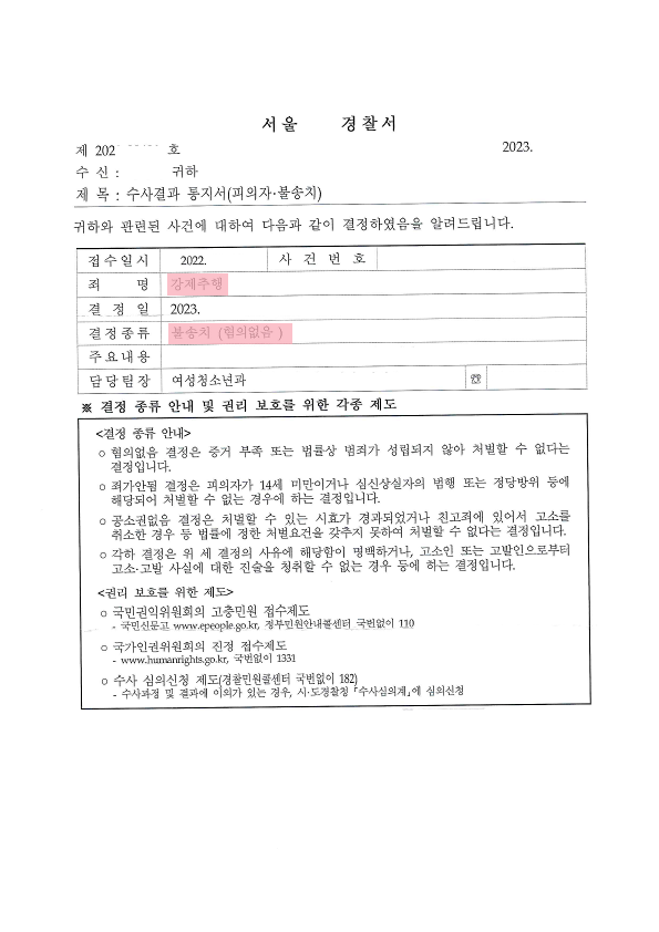 결국, 경찰 단계에서 '무혐의' 처분을 끌어낼 수 있었습니다.