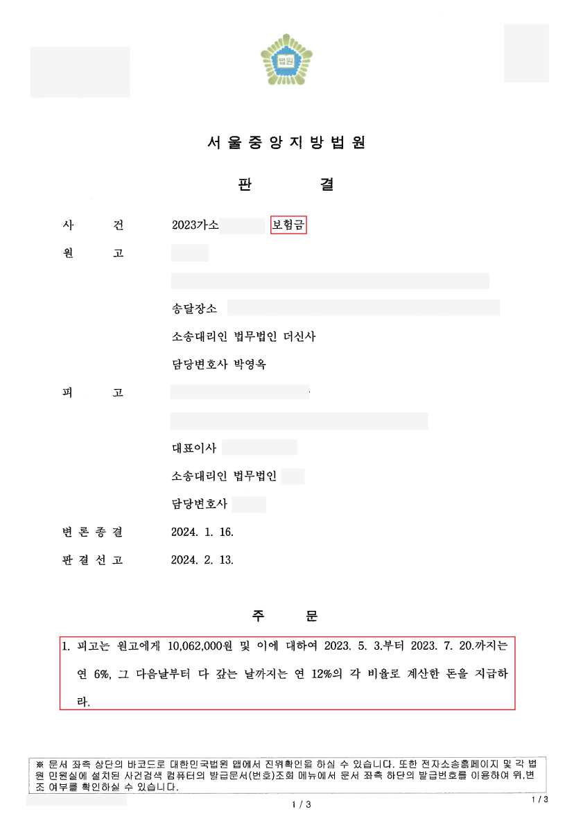 본 법무법인에서도 1년 동안의 어려움 끝에 드디어 승소하게 되었습니다.
