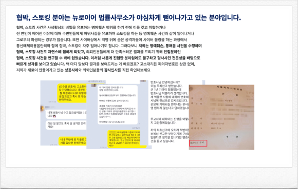 이는 저희가 명예훼손, 협박죄, 스토킹 등 다양한 사건을 처리하고 있기에 솔직하게 말씀드릴 수 있는 부분이지요.