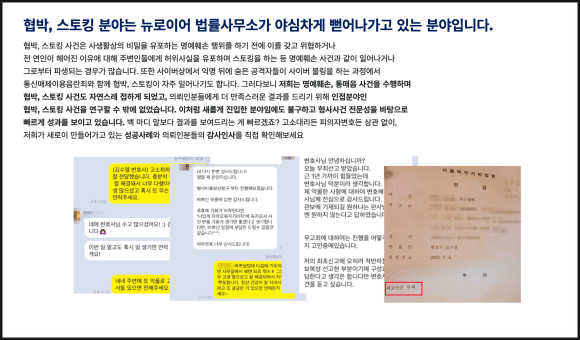 사랑했던 연인이라는 이유만으로 여러분의 일상이 불안과 고통으로 뒤덮인 지옥을 보내야 할 이유는 그 어디에도 없다는 점 기억해 주시길 바랍니다.