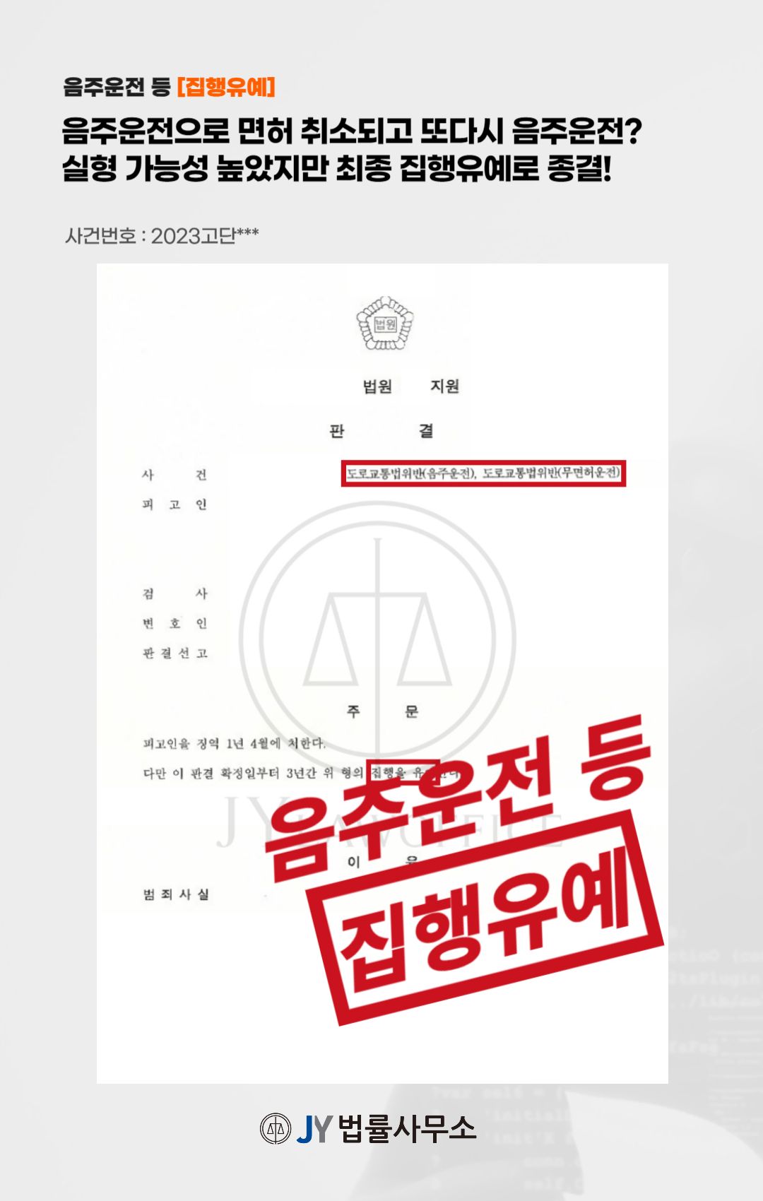 본 사건의 의뢰인은 과거 음주운전의 행위로 면허가 취소된 상태에서 또다시 음주 운전을 하였습니다. 이에 '음주운전', '무면허운전'의 혐의를 받게 된 의뢰인은 본 JY법률사무소를 찾아 사건을 의뢰해 주셨습니다.