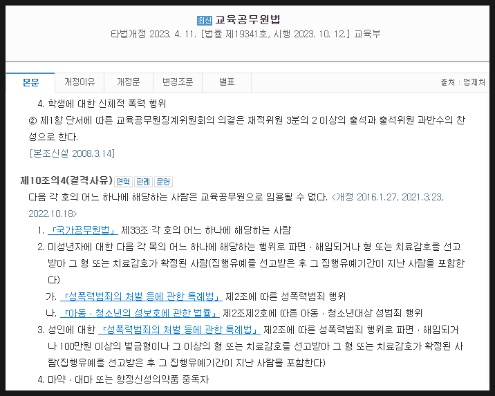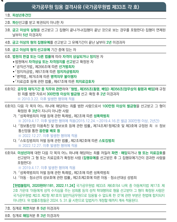 2. 성범죄 등 일부 범죄는 임용 제한될 수도.