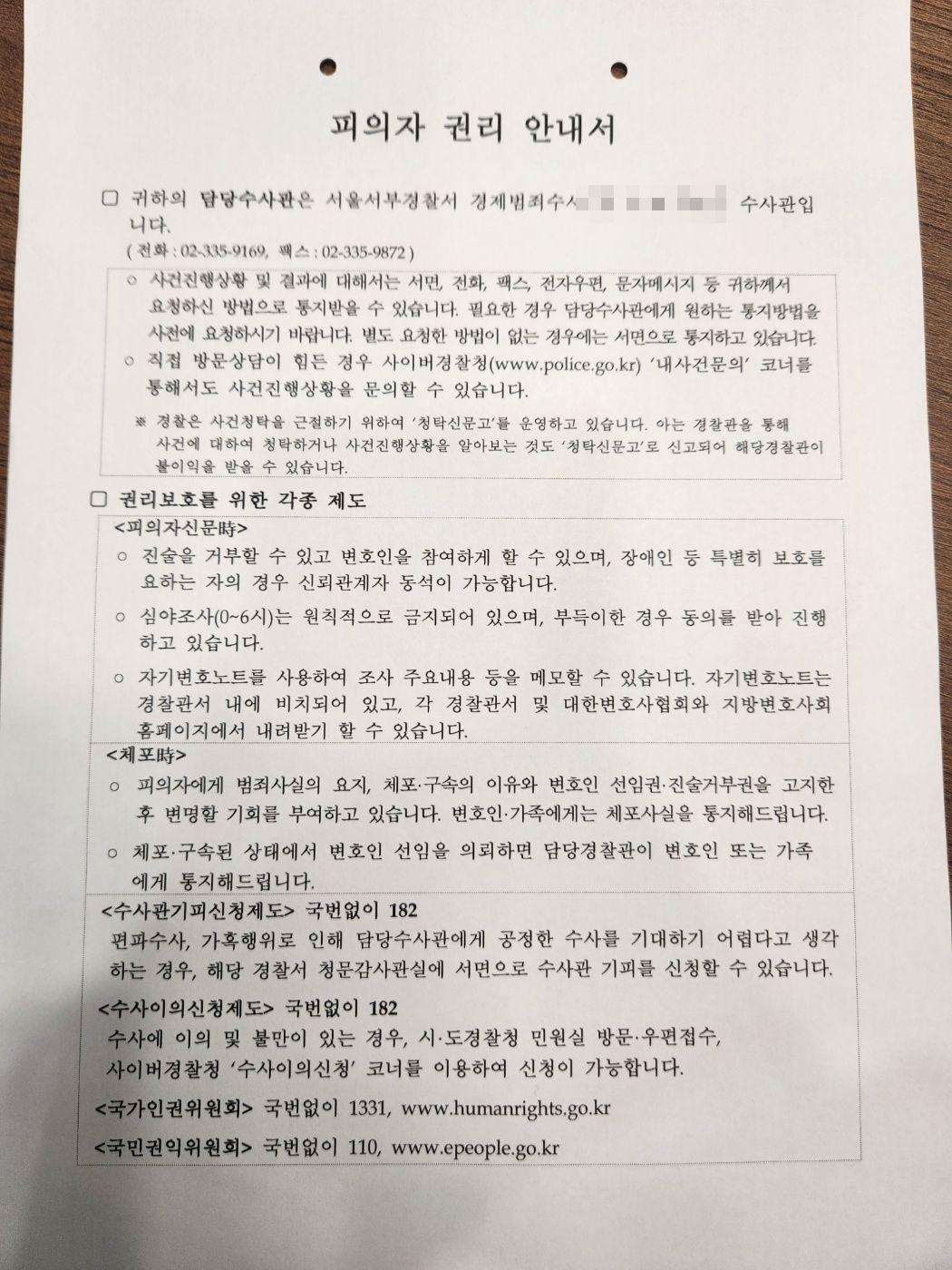 피의자 권리 안내