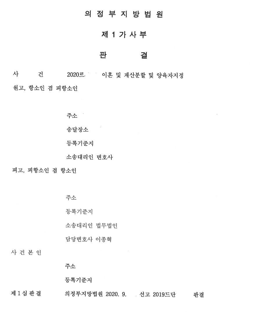 1심에서는 위자료와 재산분할에 있어서 승소를 하였으나, 친권과 양육권은 모친인 원고에게 인정되었습니다. 이에 2심에서는 재산분할의 1심 결론을 유지하면서, 친권 및 양육권까지 의뢰인(피고)에게 인정되어야 함을 적극 변론하였습니다.