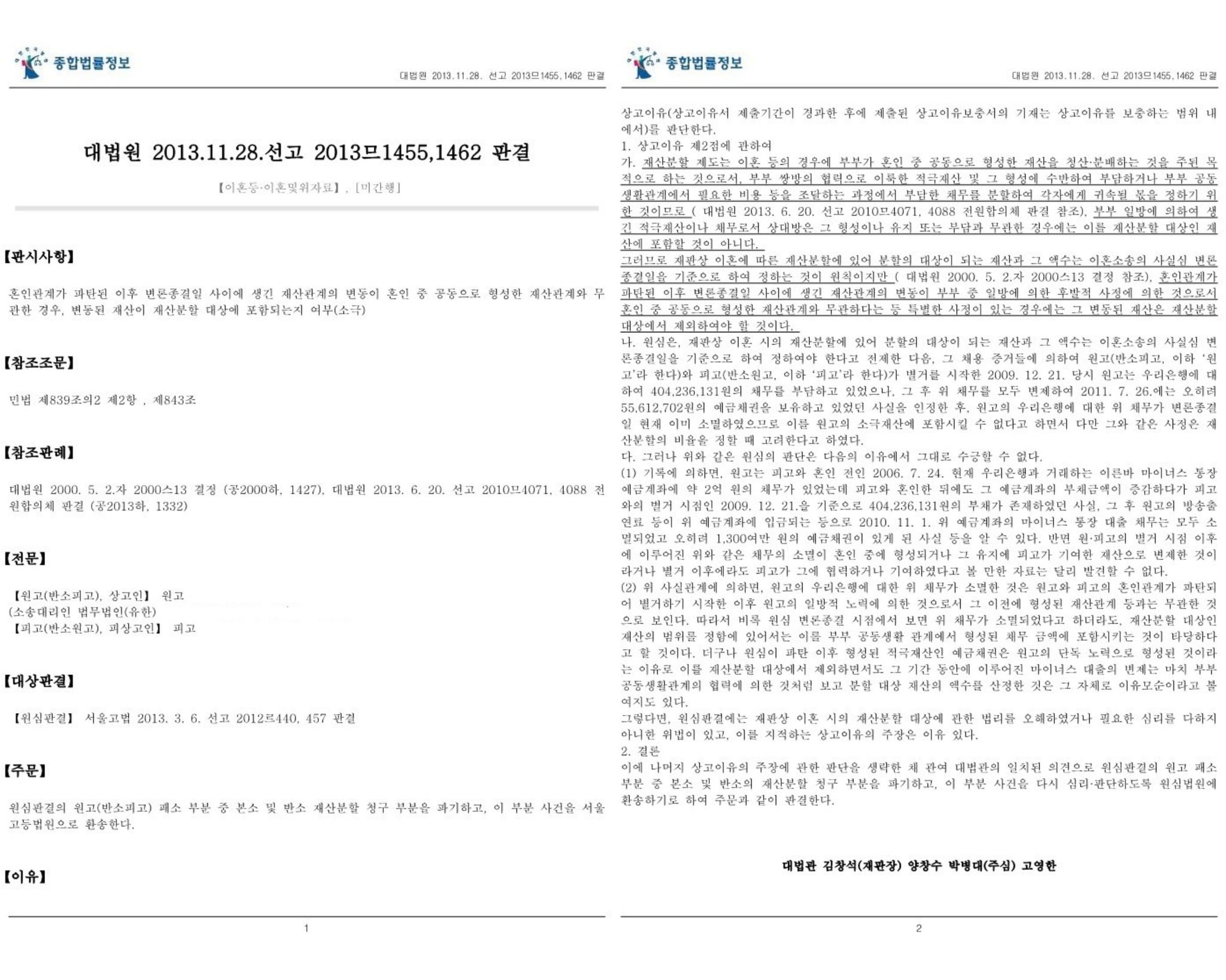 - 원심의 판단을 파기한 대법원의 판단 : 대법원 2013. 11. 28. 선고 2013므1455,1462 판결