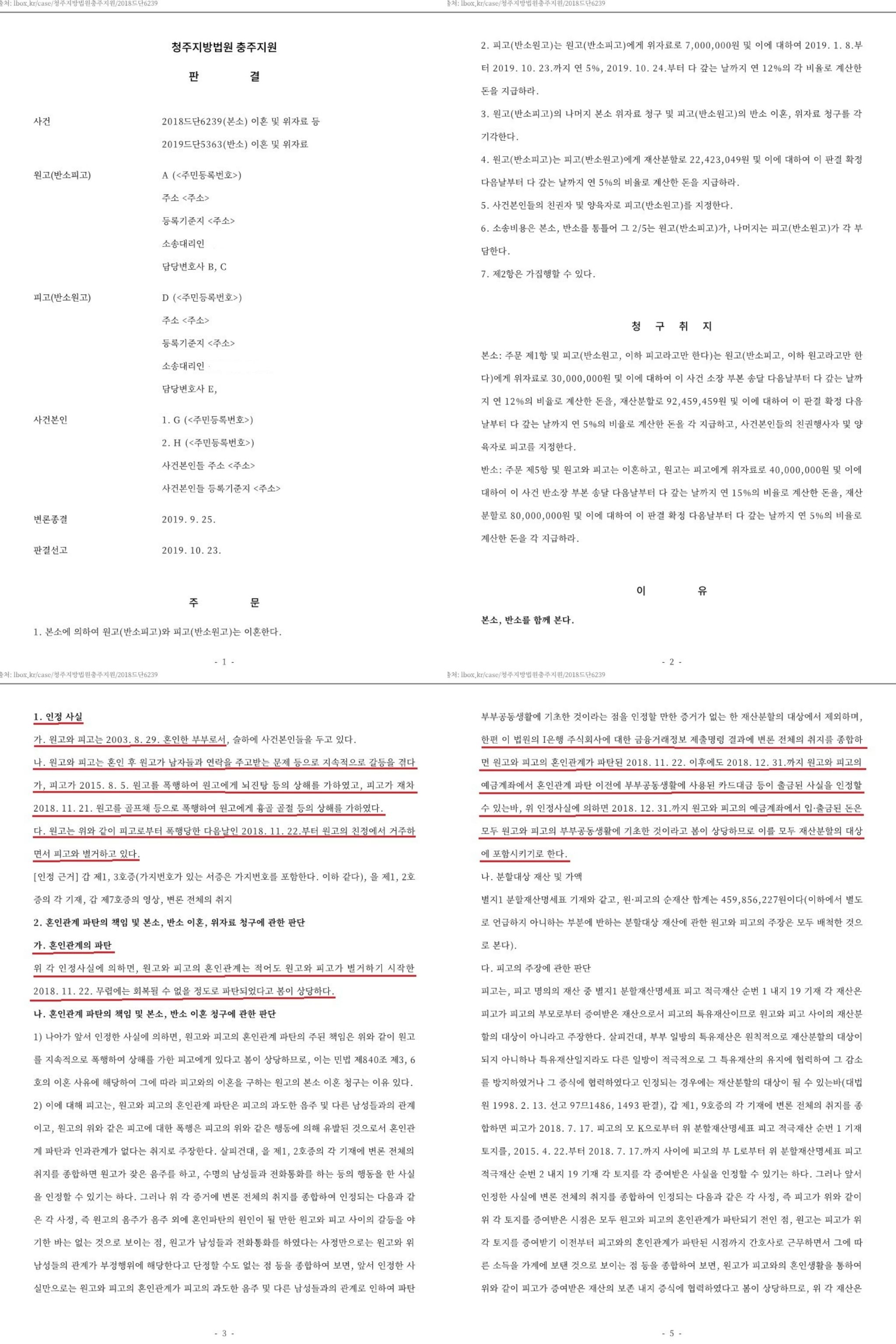 청주지방법원 청주지원은 “위 각 인정사실에 의하면, 원고와 피고의 혼인관계는 적어도 원고와 피고가 별거하기 시작한 2018. 11. 22. 무렵에는 회복될 수 없을 정도로 파탄되었다고 봄이 상당하다.”고 판단한 것입니다.