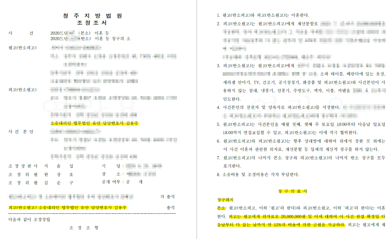 상대방의 의뢰인에 대한 위자료 청구 포기, 이혼조정 성립