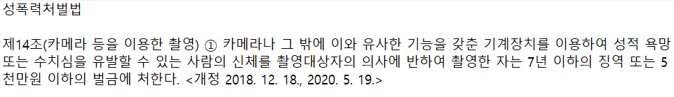 만일, 실수로라도 하체 부위를 부각하여 촬영하거나 엉덩이 등 성적 수치심을 느낄 수 있는 부위를 촬영하게 되는 경우 증거수집을 하려다 성폭력처벌법위반죄로 처벌을 받을 수도 있습니다.