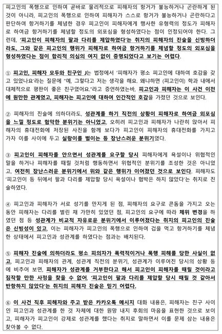 아래에서는 실제 피해자의 일관된 진술이 있었더라도 무죄 판결이 나온 판결 사례를 살펴보도록 하겠습니다.