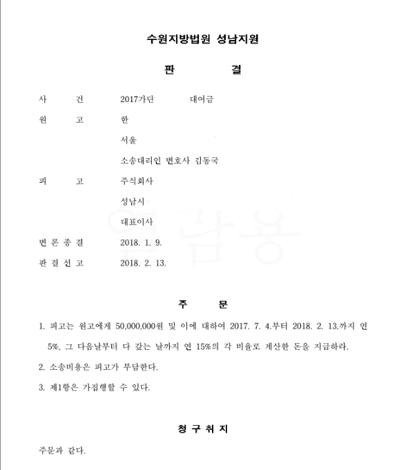 주식회사의 대표이사가 금전을 대여해 주식회사에 대여금 반환청구를 한 사안입니다.