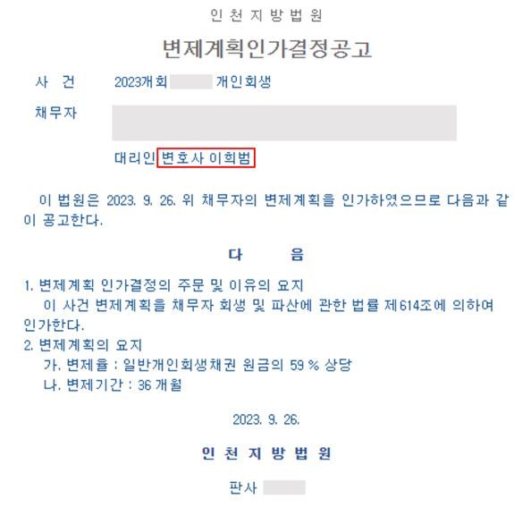 [ 개인회생 성공사례 ] 장애인의 개인회생 / 변제율 : 원금의 59%