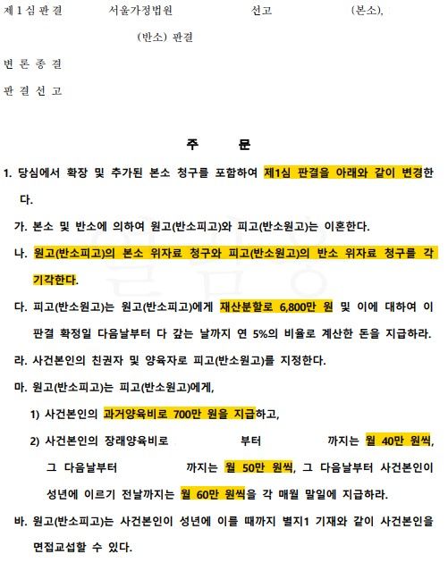 결국, 의뢰인은 남편에게 위자료, 재산분할, 양육비를 정산해야 하는 상황에 놓이게 되었고, 도저히 1심 판결을 납득할 수 없어 소송대리인을 변경하고 항소심을 진행하기로 결정하였습니다.