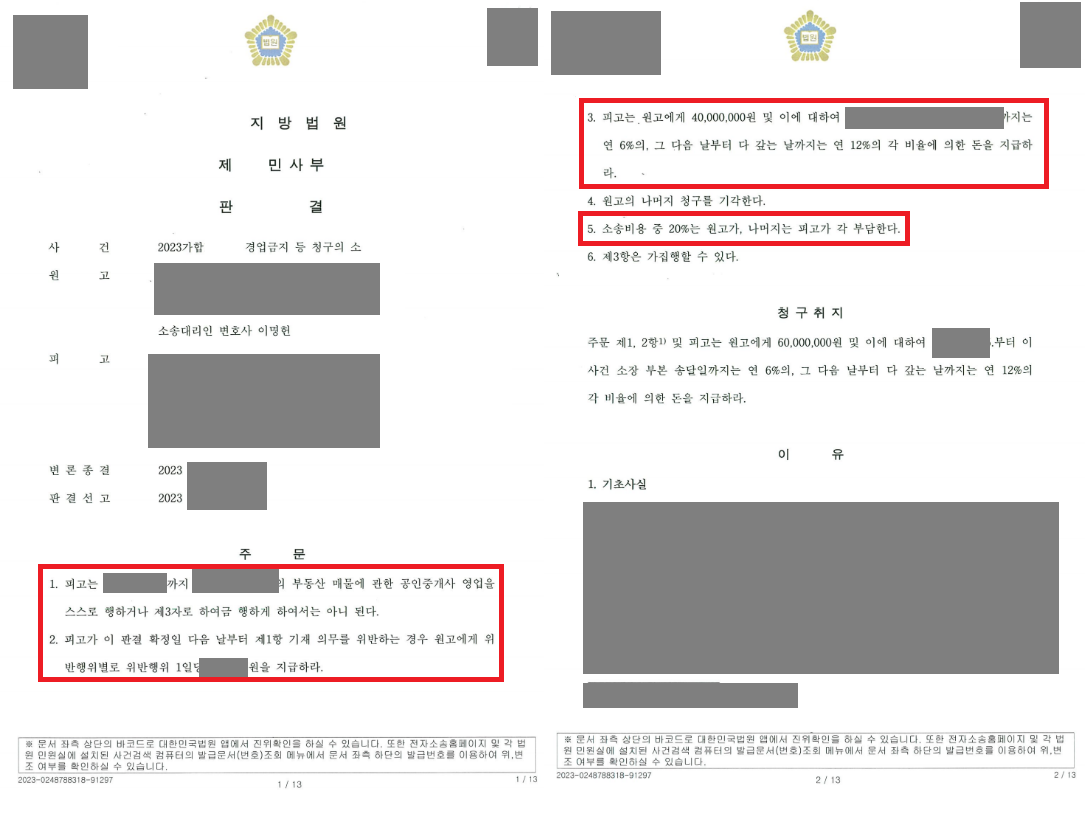 개업의 큰 꿈을 안고 거액의 권리금까지 부담하며 영업을 양수받는 분들이 많으시리라 생각합니다. 오늘 소개해드릴 사건은 의뢰인이 부동산 중개사무실 영업을 양도 받았으나, 양도인이 다른 지역에 부동산 중개사무실을 오픈한 후 양도한 중개사무실 관할 지역의 부동산 매물에 대해 온라인 광고(네이버 부동산 등)를 하였던 사안입니다.