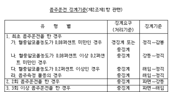 * 음주운전 징계 기준 분석