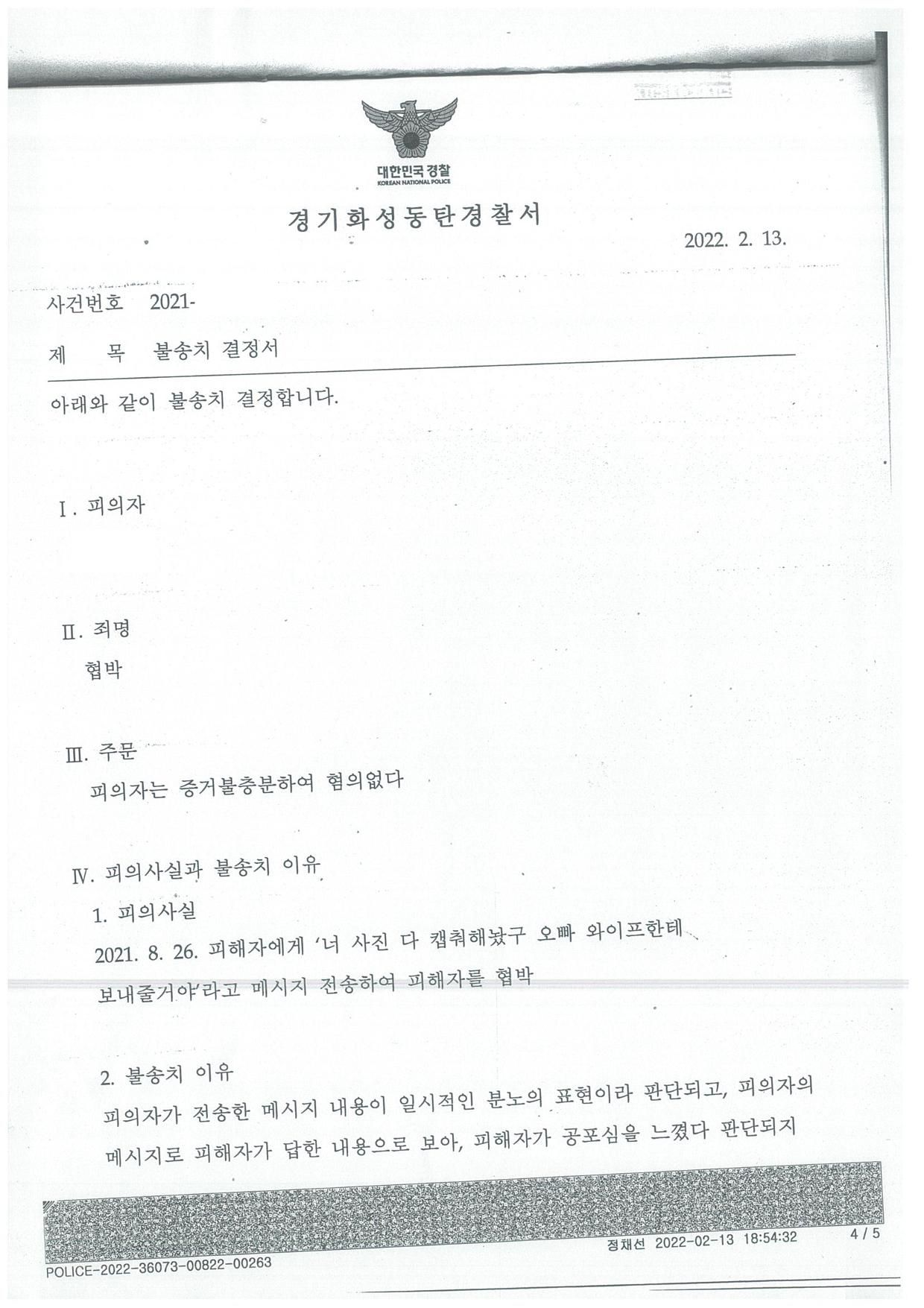 담당수사관은 본 변호인의 의견을 받아들여 피의자에게 불송치처분을 내려 주었습니다.