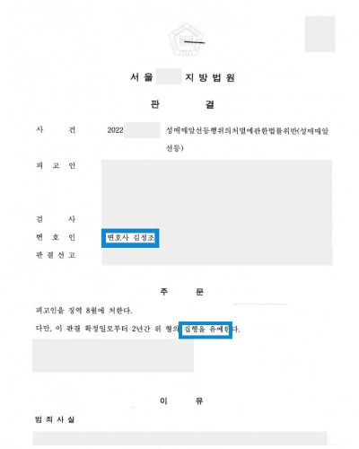 변호인의 노력 끝에 집행유예로 방어할 수 있었습니다.