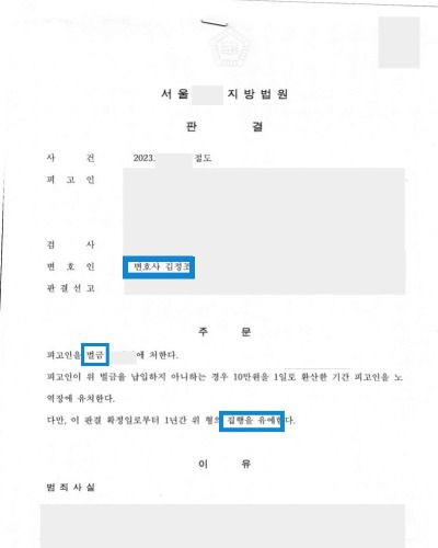 변호인의 노력 끝에 집행유예로 방어할 수 있었습니다.