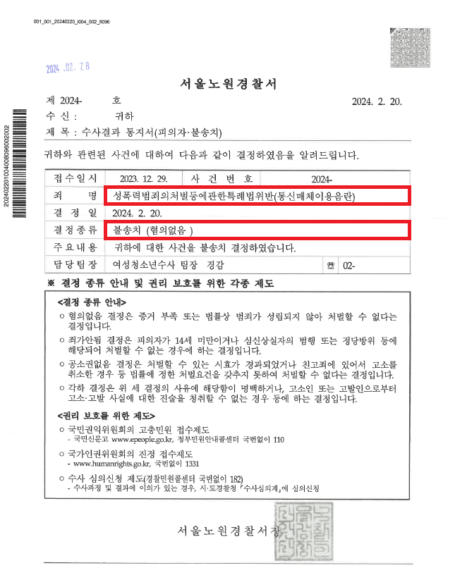 ※ 이로써 랜덤 채팅 어플리케이션 무혐의 사건은 41개로 늘어나게 되었습니다.