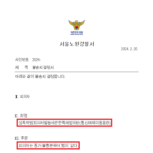 ① 저는 A씨와 상담하면서 "최근 '핑톡'에서의 성적 채팅이나 사진 전송을 가지고 경산경찰서에 여러 명을 고소한 사건이 있었는데, 제가 맡은 사건들은 모두 '불송치(혐의없음)' 결정을 받았다. 무혐의 가능하니 너무 걱정하지 마시라."고 조언해드렸습니다.