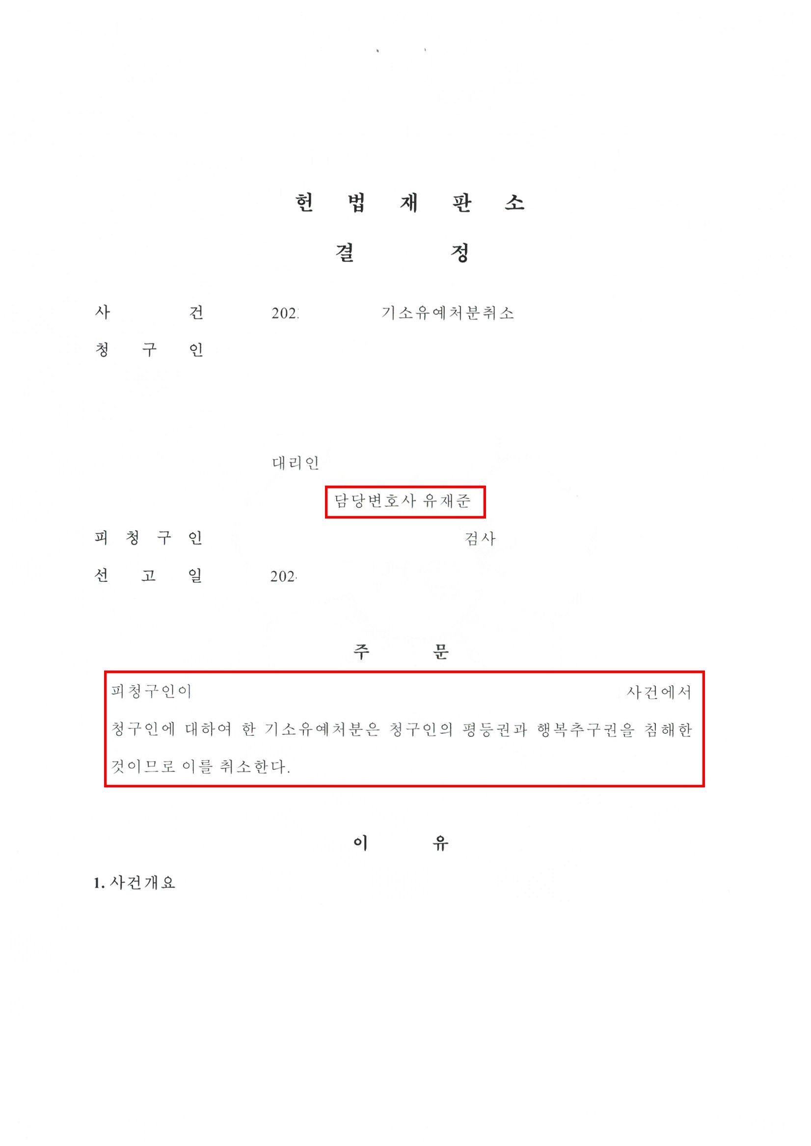 (2024. 2. 헌법재판소 최근주요결정 참조)