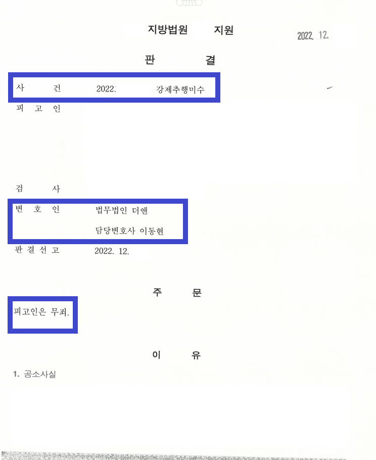 이후 A씨는 기소되어 재판을 받게 되었으나 결국 '무죄' 판결을 받게 되었습니다.