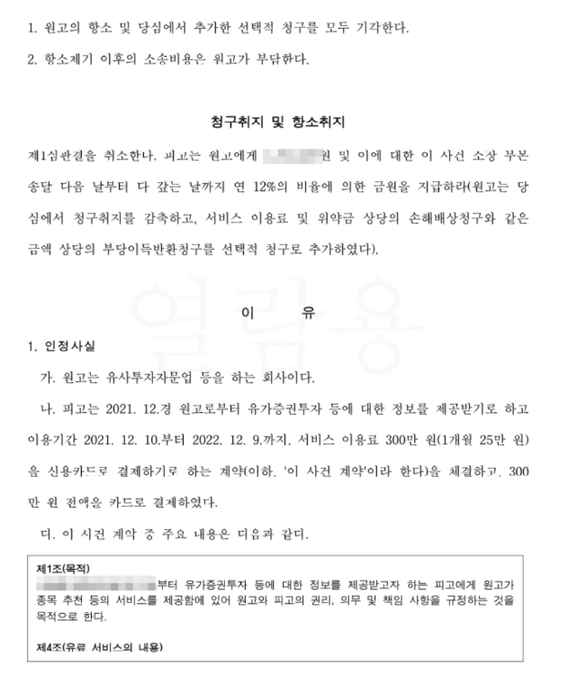 주식리딩방 유사투자자문업체와의 환불소송 승소사례
