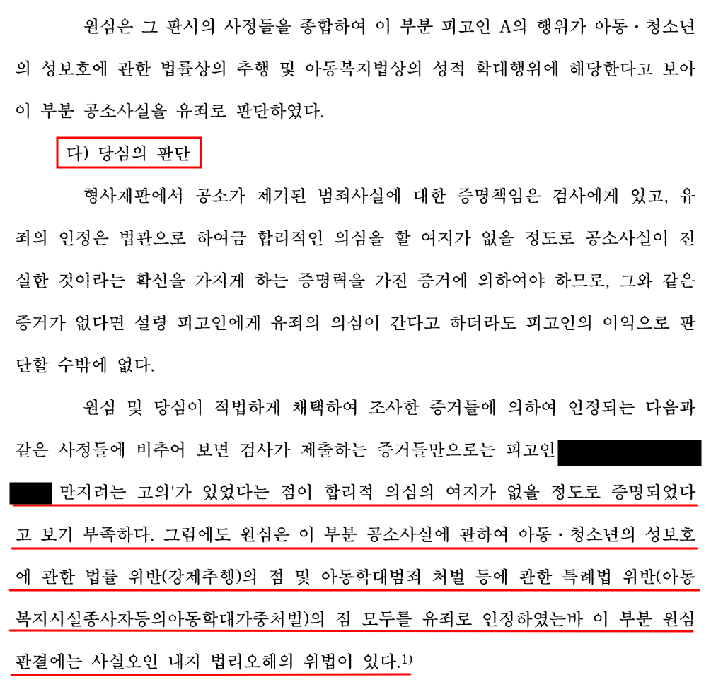 그러자 X는 법정에서 "선생님과 함께 사진을 찍었을 뿐이고 선생님이 나의 00과 00 부분을 만진 것은 아닌 것 같다. 후배들의 말을 듣고 과거에 있었던 일이 강제추행일지도 모른다고 생각해 신고했다. 후배들을 도와주고 싶은 마음에 과장해서 진술한 것 같다."라고 말했습니다.